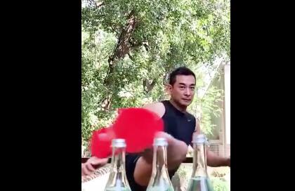 世界冠军蔡赟用羽毛球“扫”开瓶盖,