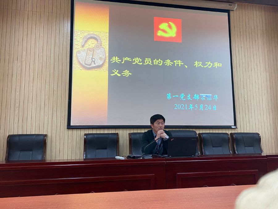 首先宋保华老师向大家介绍了共产党员的条件、权力和义务,他详细向大家介绍了申请入党的条件有三条,分别是年龄、条件身份条件、承认党的纲领和章程,老师最后向大家提出了两点要求:1、端正入党动机2、树立正确的入党动机。并且他还祝大家早日成为一名合格的共产党员!