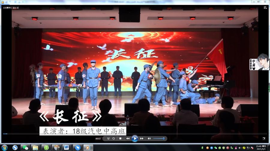 18 级汽电中高班带来的情景朗诵《长征》,向我们展示一代人有一代人的长征,一代人有一代人的担当,青春的力量在接续奋斗中始终激荡。
